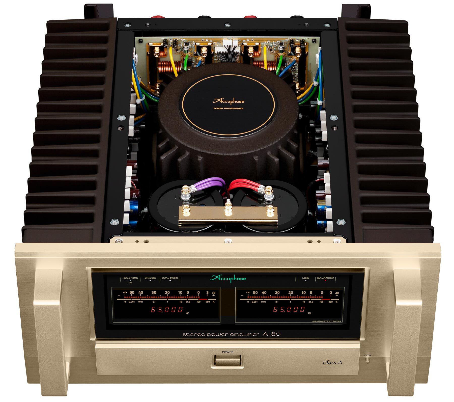 Transcrevendo das palavras da própria Accuphase, o A-80 é um amplificador de potência em Classe A desenvolvido como uma versão de amplificador estéreo do modelo A-300. A optimização dos 10 transístores de potência MOS-FET, por canal, numa configuração push-pull no estágio de saída, permite produzir uma potência de saída em Classe A de 65 W em 8 Ohm, 130 W em 4 Ohm, 260 W em 2 Ohm e 520 W a 1 Ohm. O investimento rigoroso em novas tecnologias de redução de ruído permitiu alcançar uma sensação de presença e expressão minuciosa que rivaliza com performances ao vivo. O amplificador de potência A-80 combina perfeitamente a tecnologia moderna com a riqueza de conhecimento que a Accuphase acumulou na sua busca pela expressão sonora perfeita.